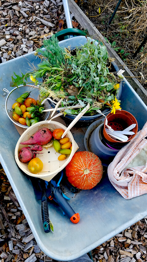 Kompost herzustellen gehört auch zu meinen Lieblingsaufgaben. Ich habe drei Komposter, ich liebe aber auch die Flächenkompostierung über das Jahr hinweg. Der Boden wird von Jahr zu Jahr schöner und fruchtbarer, ich muss immer weniger düngen. Das ist schön.