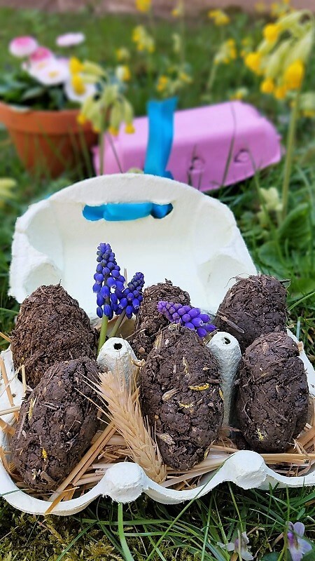Samenbomben herstellen – und zwar mal ganz anders, nämlich als DIY Idee für Ostern. Konsum war vor Corona. Die Post-Apokalypse will Garten!