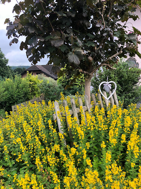 Meine Gartenblog-Leser haben es sich gewünscht: bitte blogge nochmal über schöne Privatgärten! Tue ich jetzt. Heute stelle ich auch die liebe Anne vor, die einen Vorgarten getreu dem Motto „Holz und Stauden vor der Hüttn“ hat.